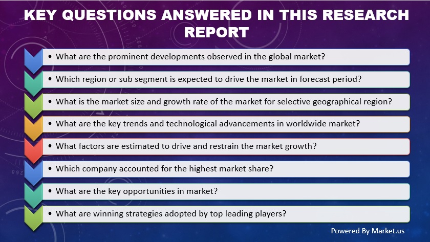 To get the best results Market.us provide the data you need for your market research. The solutions and opinions on the following questions are what companies use to make decisions about new products or services. Based on the solution received from this survey, a manufacturer can decide which features to invest and enhance or improve, and which features to relatively defocus or discontinue. This research enables a business to efficiently allocate resources based on real data or information and data-oriented insights from their consumers.