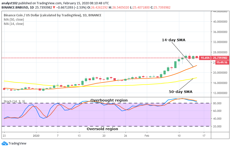 After a long and relative up rises in the BNB/USD market operations, the bulls have to stably push past $28 mark to the north to gain a stance for more ups against a falling price movement from that line. It is equally envisaged that the bulls may not be having smoother against the bears in the movement pathway to the north.