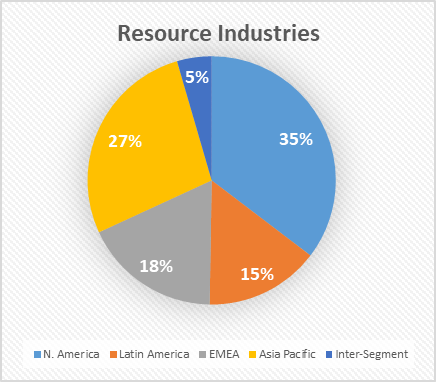 After breaking down the three key machinery segments into regional revenue proportions, it can be noted that a majority of Caterpillar’s business occurs in North America, Asia/Pacific, and EMEA (Europe/Middle East/Africa). Latin America only comprises a double-digit percentage in the resource industry breakdown, as that segment provides machinery primarily involved in resource extraction.
