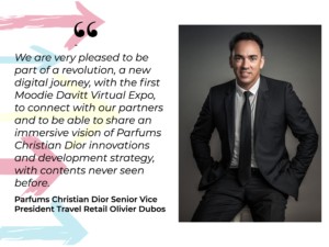 Parfums Christian Dior Senior Vice President Travel Retail Olivier Dubos said: “We are very pleased to be part of a revolution, a new digital journey, with the first Moodie Davitt Virtual Expo, to connect with our partners and to be able to share an immersive vision of Parfums Christian Dior innovations and development strategy, with contents never seen before.