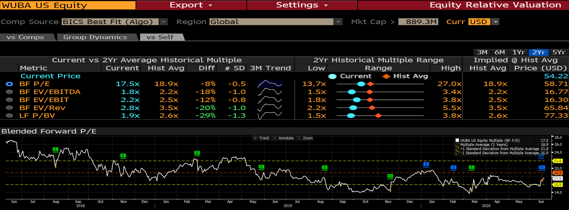 The stock has been trading closer to its proposed buyout price which is expected to close sometime in 2H20e. There is a slight possibility that the proposal could be rejected should the business recover and that the buyout price is still meaningfully lower than its peak YTD.