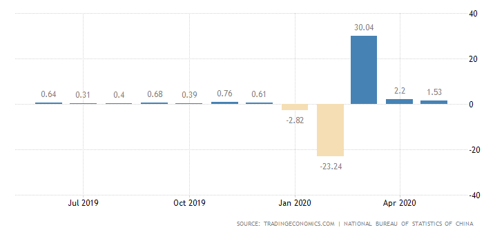 Industrial production took a large hit in February (partially due to the timing of the Chinese New Year holiday). But, as the country began to recover from the pandemic, cities gradually relieved lockdown conditions, and factories were allowed to resume. The March jump was mainly due to the digestion of the backlog.