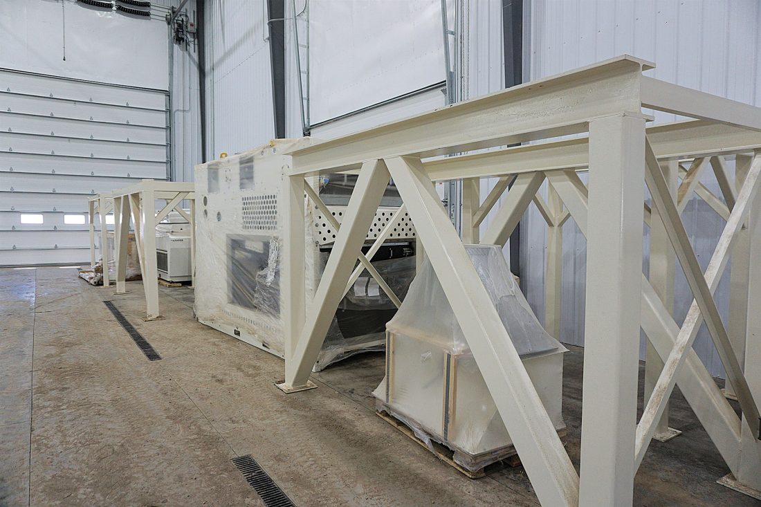 Seed conditioning equipment sits in a new building at North Central Research Extension Center Monday, waiting for installation.