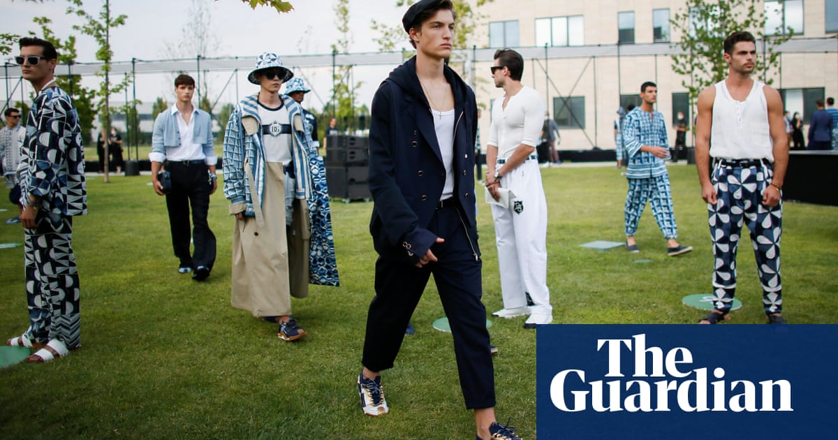 Dolce & Gabbana told the Guardian that during lockdown in Italy “preparation went on” for the 103-look collection, inspired by the architectural lines and nautical-hued ceramics at the 1960s Parco dei Principi hotel in Sorrento, designed by Gio Ponti. This was a pared-back offering of layered linen suits and mosaic prints with a Neapolitan theme. The designers, who were forced to cancel a show in China in 2018 following accusations of racism, stuck to Italian themes.