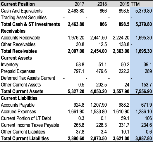 MCD’s most recent dividend payout ratio was steep at 88.87%, which may be unsustainable in order to continue the current payout figure and growth estimates, especially in light of the company pulling its guidance for 2020 amidst Covid-19 market uncertainty. However, MCD shows profitability after meetings its obligations to date, recording lofty FCF of $4.13billion on a sound OCF margin of 36.83% moving out of 2020.