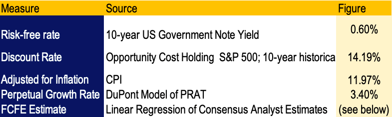 To add weight to the valuation model, we have analyzed FCFE estimates using linear regression of FCFE estimates, obtained from the consensus of analyst expectations. Using the valuation model, we have assigned a perpetual growth rate of 3.40%, obtained from using the PRAT model to identify the sustainable growth rate. We have also opted to use the 10-year historical mean as the opportunity cost instead of the S&P equity risk premium of 6.00%, considering high uncertainty in equities markets at this point.