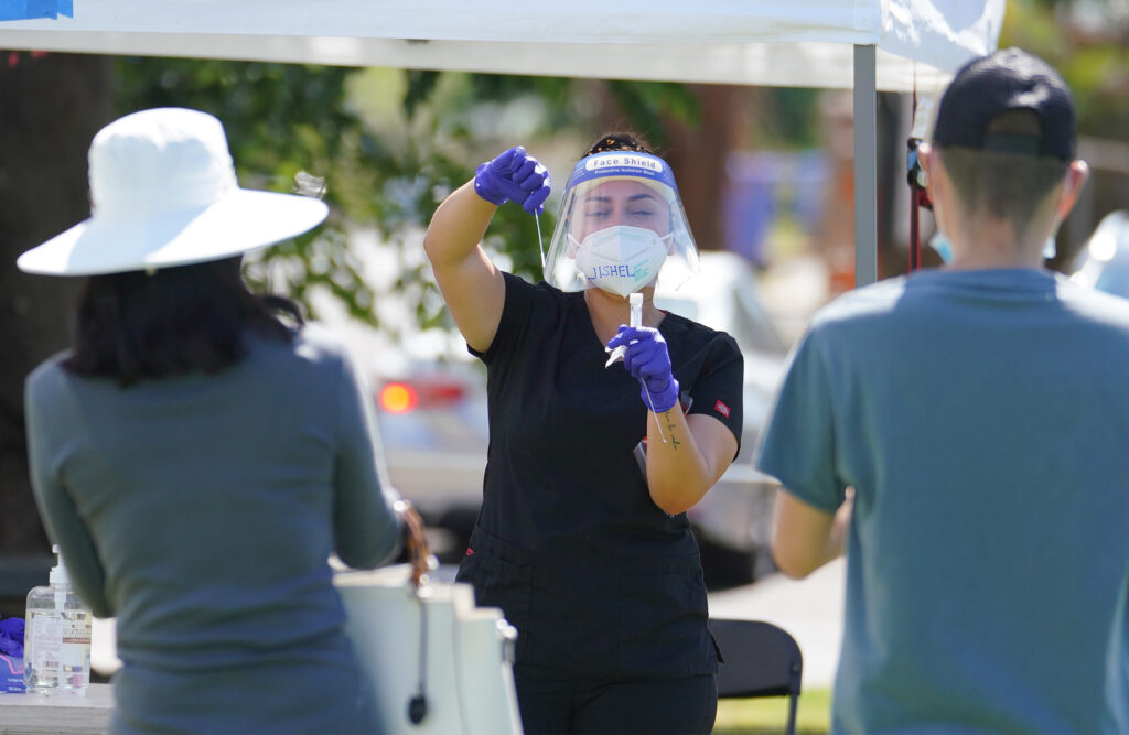 Medical personnel assist with surge COVID-19 testing at Waialae Iki Park Sept. 9. Oceanit has developed a test that is far less invasive and can produce results faster.