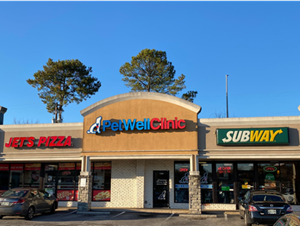 PetWellClinic in retail center.