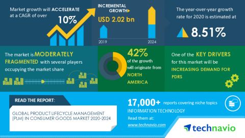 Technavio has been monitoring the product lifecycle management (PLM) in consumer goods market and it is poised to grow by USD 2.02 billion during 2020-2024, progressing at a CAGR of over 10% during the forecast period. The report offers an up-to-date analysis regarding the current market scenario, latest trends and drivers, and the overall market environment.
