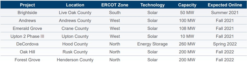 The Company also announced today the details of Phase 1 projects in Texas accounting for almost 1,000MW of solar and ESS projects with returns in excess of 18% average expected levered returns and EBITDA growth of $90-$100MM/year: