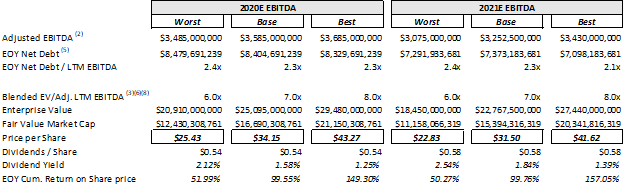 The Equity Research Analyst price targets generally range from $25 to $32/share, reflecting a ~35% to ~70% return (based on the closing price of $18.50 as of 9/29/20) with a “blue sky” target of $43/share.