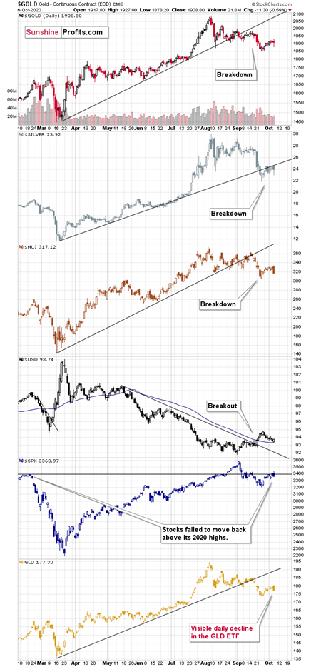 Today, it’s evident that nothing from the above happened. And why is that? Because the medium-term trend changed in August and what we see now is just the early part of the decline. It seems that the noticeable pause after this decline is close to being over. But why? We’ll get to that shortly. In the meantime, let’s take a look at the general stock market performance.