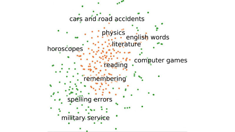 Smirnov calculated the coefficients for all 2.5 million words of the vector model and made them available for further study. Interestingly, even words that are rarely found in a training dataset can predict academic performance. For example, even if the name ‘Newt’ (as in the Harry Potter character, Newt Scamander) never appears in the training dataset, the model might assign a higher rating to posts that contain it. This will happen if the model learns that words from novel series are used by high-achieving students, and, through unsupervised learning, ‘intuit’ that that the name ‘Newt’ belongs to this category (that is, the word is closely situated to other concepts from Harry Potter in the vector space).