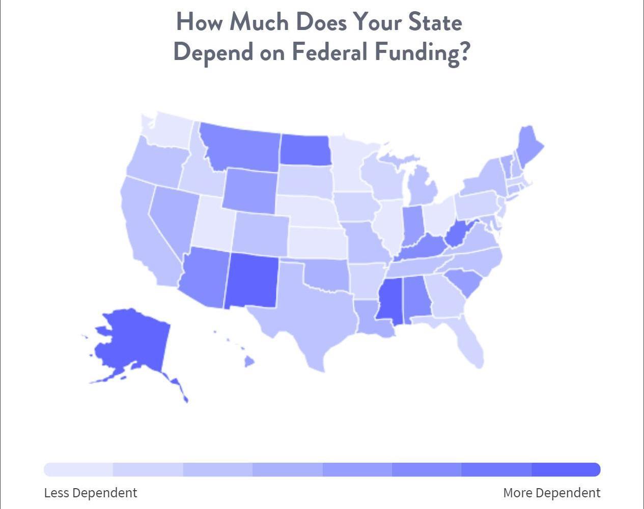This is according to a state-by-state “federal dependency” study by personal finance company MoneyGeek, which analyzed taxes sent to Washington and the percent of each state’s revenue provided by the federal government, as well as projected declines in state revenues because of COVID-19.