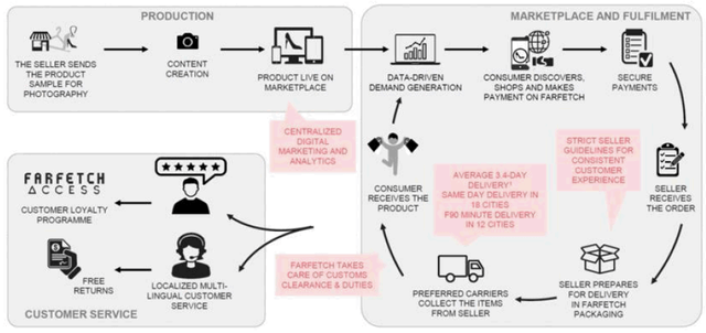 The nearest marketplace competitor, YOOX Net-a-Porter, owned by Richemont (OTCPK:CFRHF), has not made sufficient investments in its underlying technology and logistics – it lacks the integrated real-time inventory management systems Farfetch has, in addition to cross-border delivery networks and fulfillment. Given Richemont owns YOOX, it competes directly against non-Richemont brands, whilst Farfetch does not, allowing brands to feel comfortable they will not have to compete against the platform as is the case with Amazon marketplace.
