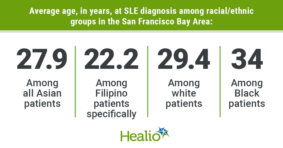 According to the researchers, the average age at SLE diagnosis was younger among Asian patients, at 27.9 years, compared with 29.4 years for whites and 34 years for Black patients. The average age at diagnosis was particularly young among Filipino patients, at 22.2 years. Early age at diagnosis was associated with greater organ damage among Asian, Black and Hispanic patients, but not among white patients.