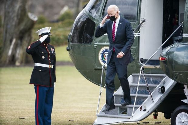 Biden disembarks from Marine One on the South Lawn of the White House on Friday.