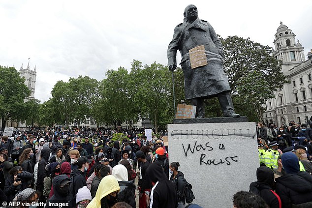 The rise of populism has shredded the political fabric of the country. The rise of Wokeism is undermining the principles of economic freedom and meritocracy. Pictured: The statue of Winston Churchill defaced, with the words (Churchill) ‘was a racist’ written on it in June